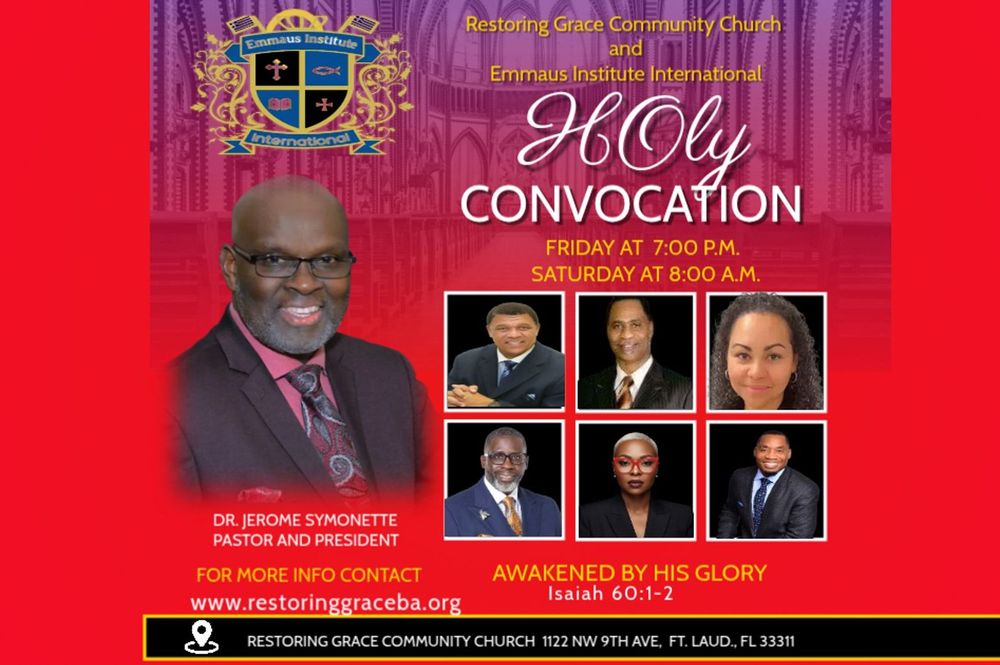 Our 2026 Holy Convocation, sponsored with the Emmaus Institute International, will be held on Friday, May 29 through Saturday, May 30, 2026. This promises to be powerful and exciting time of worship, fellowship, and spiritual refreshing. Friday night's session will begin at 7:00 p.m., with a time of worship and powerful preaching. Our Saturday session will begin at 8:00 a.m. will begin with our Morning Glory and Breakfast. The Registration is FREE. You may register on this website on the Home page (under the 2026 Holy Convocation Tab). You will not want to miss this Convocation. Join us and be blessed!